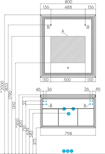 - 2 выдвижных ящика и 2 дверцы с системой открытия Push to Open.
