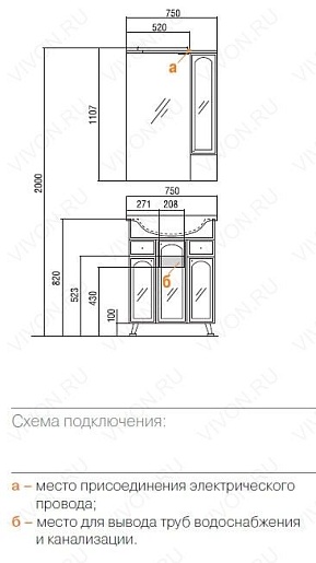 Комплектация: ручка – 5, ящик – 2, полка – 3, ножки – 4, раковина «АКВАЛАЙН» 75 см (AKVALINE / 1.WH11.0.237) – 1.