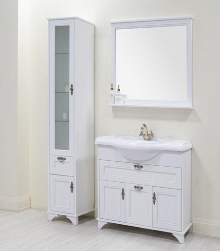 - тумба под раковину: распашные дверцы с доводчиками, выдвижной ящик с органайзером, внутренние полки, ручки от итальянского производителя BOSETI MORELLA