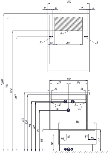 - Размер раковины (ШxВxГ): 600х190х435 мм.