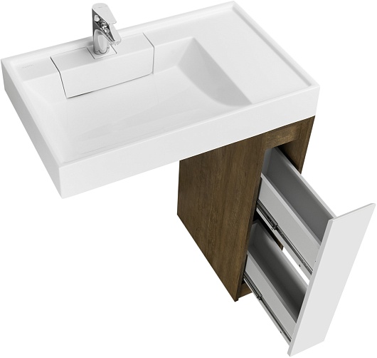 - Открытие тумбы осуществляется за фасад благодаря эргономичному выпилу под углом.