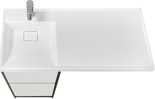 - Верхний ящик открывается с помощью системы push-to-open, а нижний - за фасад с помощью удобного выпила под углом.