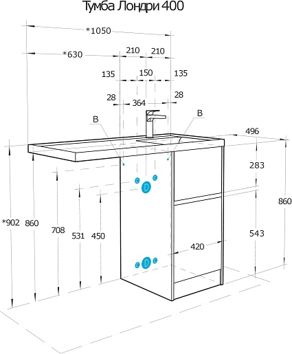 - Раковина из искусственного мрамора Акватон Лондри 105 L с покрытием из гелькоута.