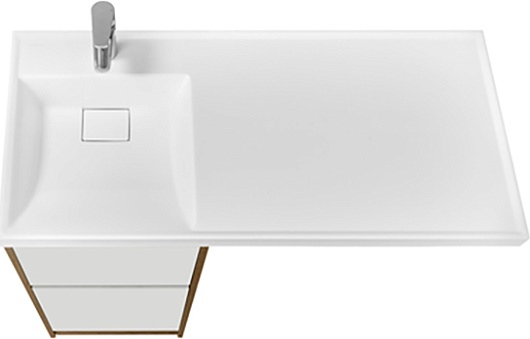 - Верхний ящик открывается с помощью системы push-to-open, а нижний - за фасад с помощью удобного выпила под углом.
