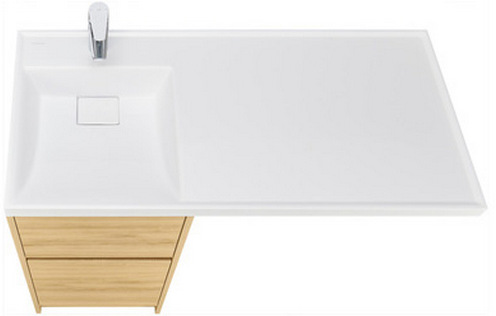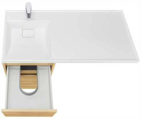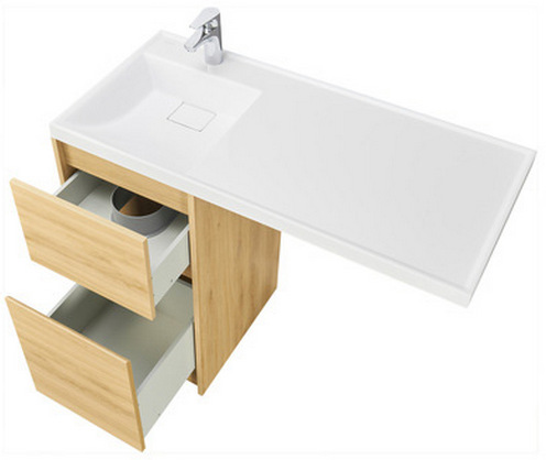 - Верхний ящик открывается с помощью системы push-to-open, а нижний - за фасад с помощью удобного выпила под углом.