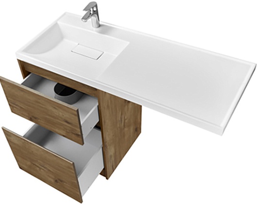 - Верхний ящик открывается с помощью системы push-to-open, а нижний - за фасад с помощью удобного выпила под углом.