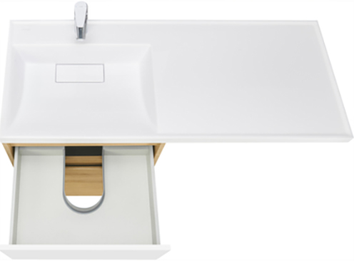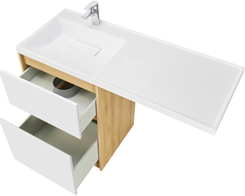- Верхний ящик открывается с помощью системы push-to-open, а нижний - за фасад с помощью удобного выпила под углом.