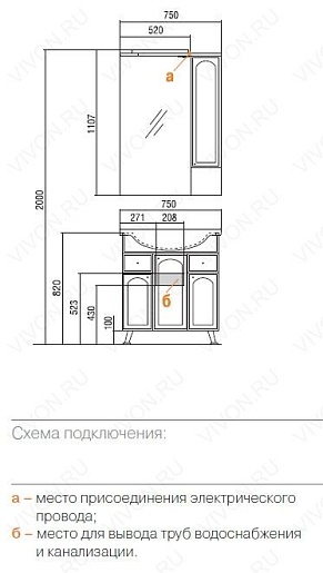 Комплектация: ручка – 5, ящик – 2, полка – 3, ножка – 4, раковина «АКВАЛАЙН» 75 см (AKVALINE / 1.WH11.0.237) – 1.
