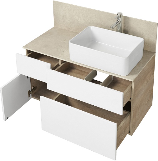 Тумба под раковину Мишель 100 дуб эндгрейн/белый