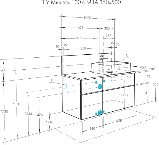 Тумба с раковиной Акватон Мишель 100 - арт. 1A244101MIX40 / 732700B000 / 1A277303MIX40.