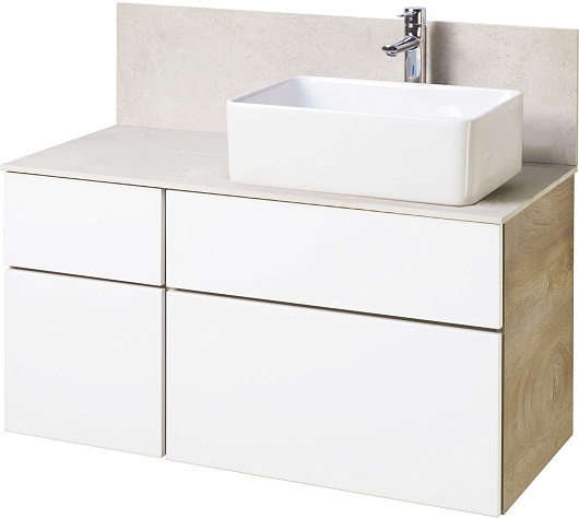 Акватон Тумба с раковиной Мишель 100 с гранитной столешницей дуб эндгрейн/белый