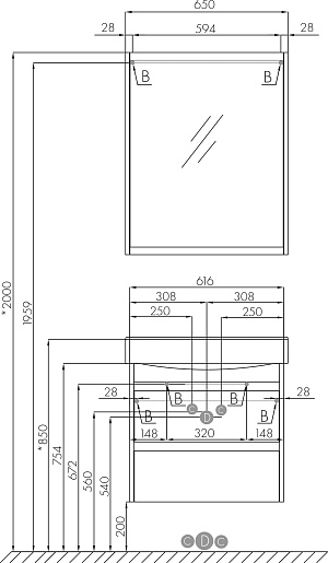 Мебельная раковина Беверли 65