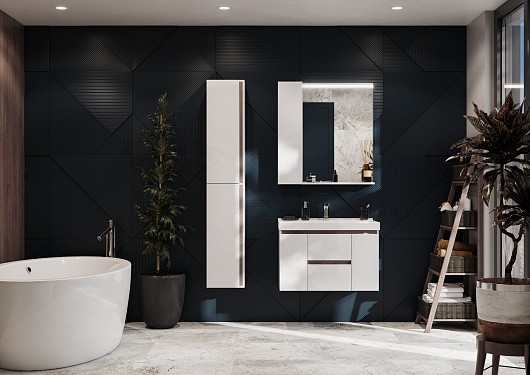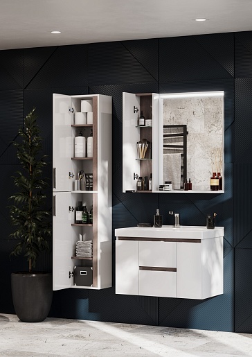 Тумба под раковину Рене 80 белая/грецкий орех