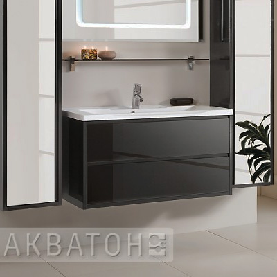 Тумба под раковину Римини 100 чёрный глянец