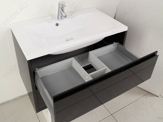 Тумба под раковину Римини 80 чёрный глянец