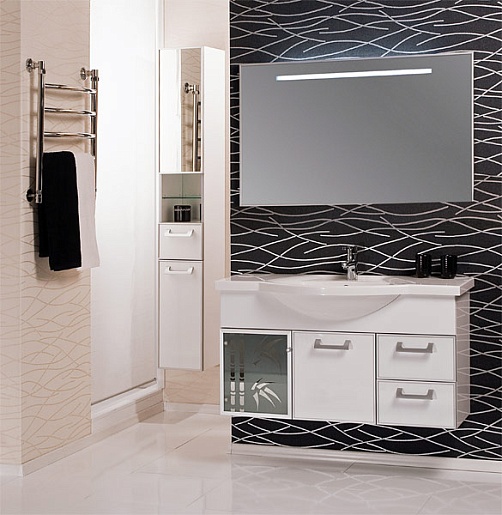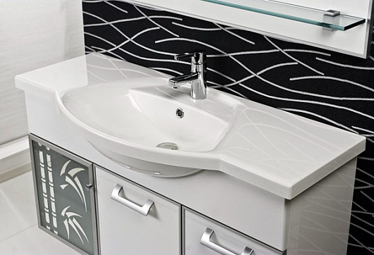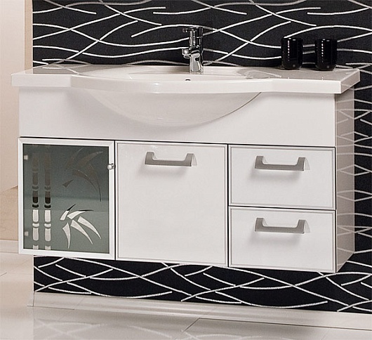 Комплектация: ручка – 4, навес – 2, полка стеклянная – 1, полка – 1, ящик – 2, полкодержатель – 8, Раковина "Лацио" 110 см белая (19-R.01.01 / 1A701931LC010).