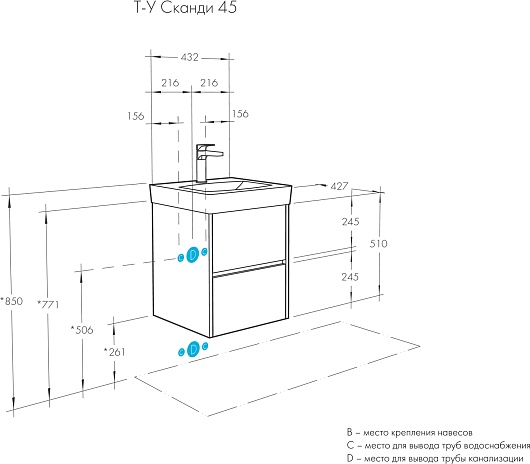Тумба с раковиной Акватон Сканди 45 - арт. 1A251601SD010 / 1WH501630.