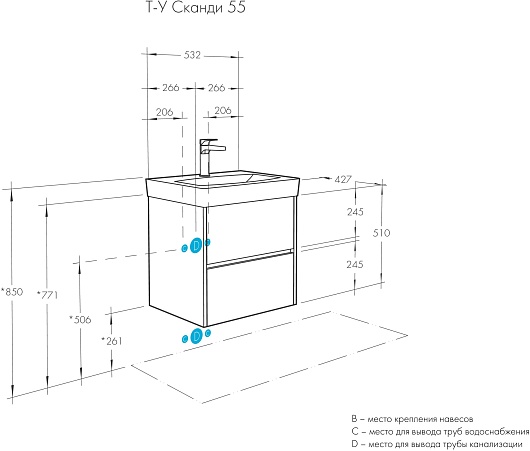 Тумба с раковиной Акватон Сканди 55 - арт. 1A251701SD010 / 1WH501620.