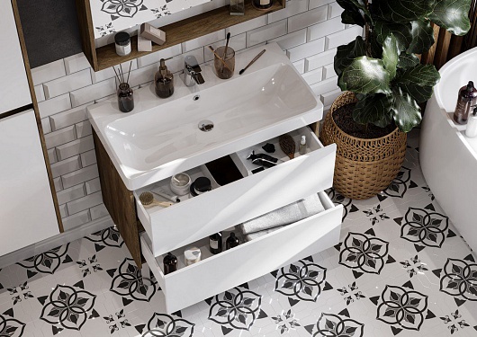 Тумба под раковину Сканди 90 дуб рустикальный, белая