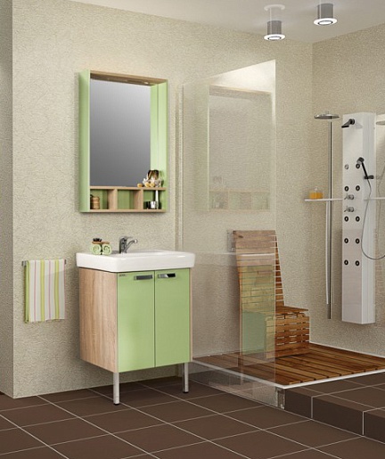 Акватон Тумба с раковиной Йорк 60 салатовый/дуб сонома