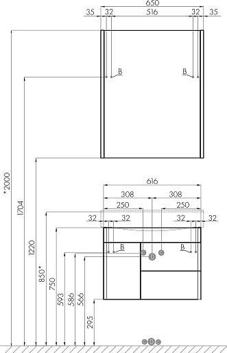 Комплектация: зеркальный шкаф, навес (2 шт.), полка вкладная стеклянная (2 шт.).