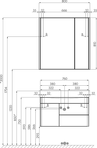 Комплектация: зеркальный шкаф, навес (2 шт.), полка вкладная стеклянная (3 шт.).