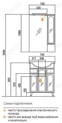 Акватон Зеркальный шкаф для ванной Эмилья 75 L