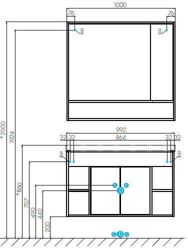 - Со шкафчиком и открытой полкой.