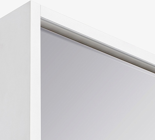 Зеркальный шкаф Акватон Капри 60 - арт. 1A230302KP010. Модель оборудована встроенной подсветкой и двумя внутренними стеклянными полками. Комфорт и удобство при использовании гарантируют направляющие с доводчиками и интегрированная система плавного закрывания.