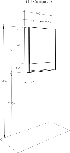 Комплектация: зеркальный шкаф, крепление.
