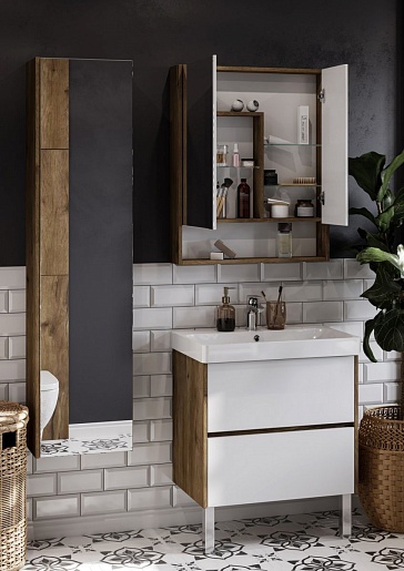 Акватон Зеркальный шкаф Сканди 70 дуб рустикальный, белый