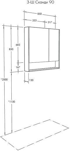 Зеркальный шкаф Акватон Сканди 85 - арт. 1A252302SDZ90.