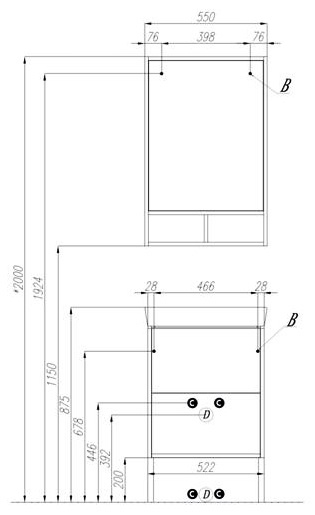 Акватон Зеркало "Йорк 55" белый/дуб сонома
