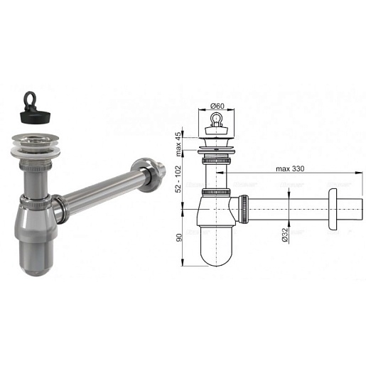 Alcaplast Сифон латунный с пробкой DN32 хром A437