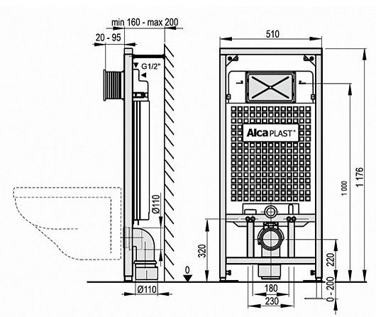 Alcaplast Система инсталляции Sadromodul AM101/1120+M71+M91 4 в 1 кнопка смыва хром