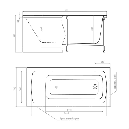 - Ванна поставляется без рамы, слива и экранов.