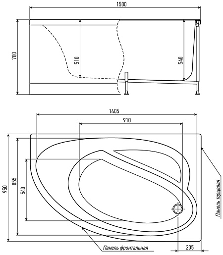 Акриловая ванна Nero 150x95 R