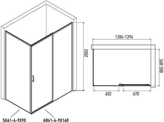 Душевая перегородка Alex Baitler AB 6 90 SG64B90 - арт. SG64B90.