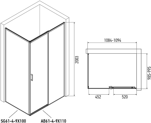 Душевая перегородка Alex Baitler AB 6 90 SG69C100 - арт. SG69C100.