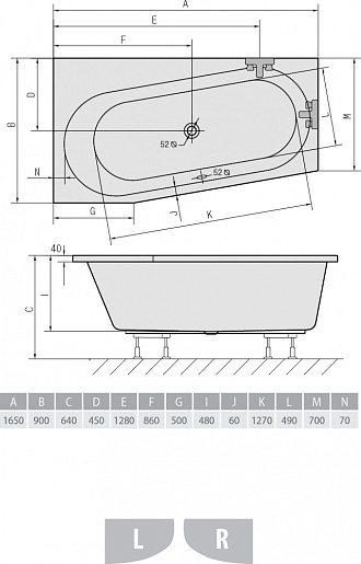 Акриловая ванна Astra 165x90 WL