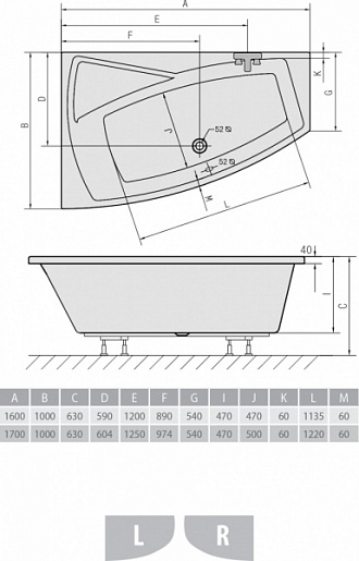 Акриловая ванна Evia 170x100 L, арт. 21611
