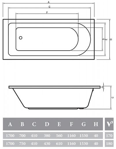 Акриловая ванна "FONTANA 170х70" - арт. AVB0007