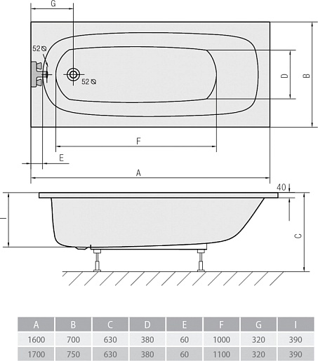 Акриловая ванна Alpen Laura 170x75 - арт. 25611.