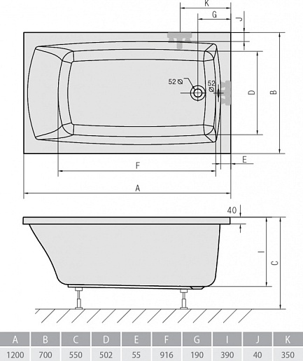 Акриловая ванна Alpen Lily 120x70 - арт. 25111.