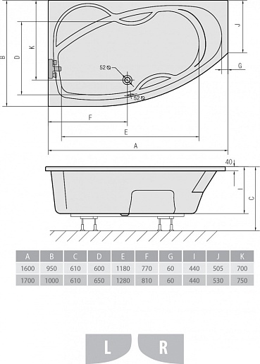 Акриловая ванна Mamba 160 L, арт. 27111