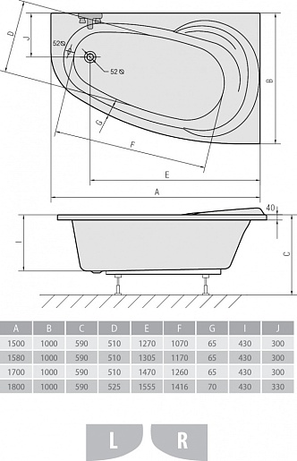 Акриловая ванна Alpen Naos 150x100 R - арт. 19111.