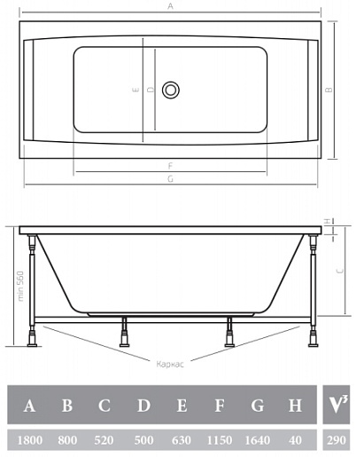Акриловая ванна " VESTA 180х80" - арт. AVP0036