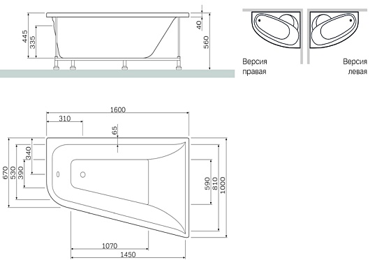 Акриловая ванна - арт. W5AA-160R100W-A64: