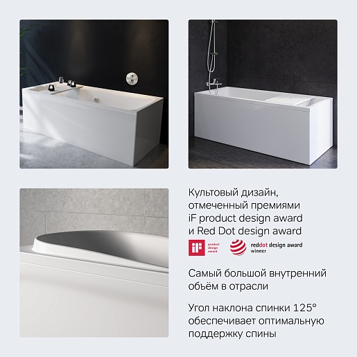 - Эргономичный дизайн - ультра тонкие борта увеличивают внутренний объем ванны.