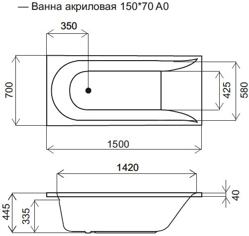 Акриловая ванна - арт. W72A-150-070W-A2: